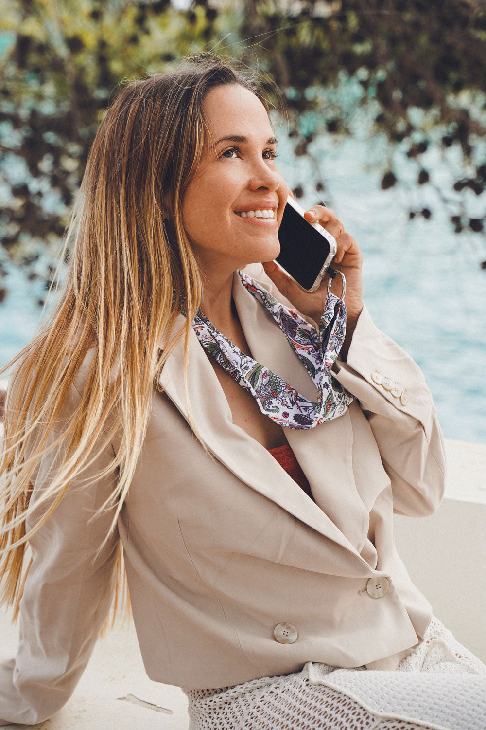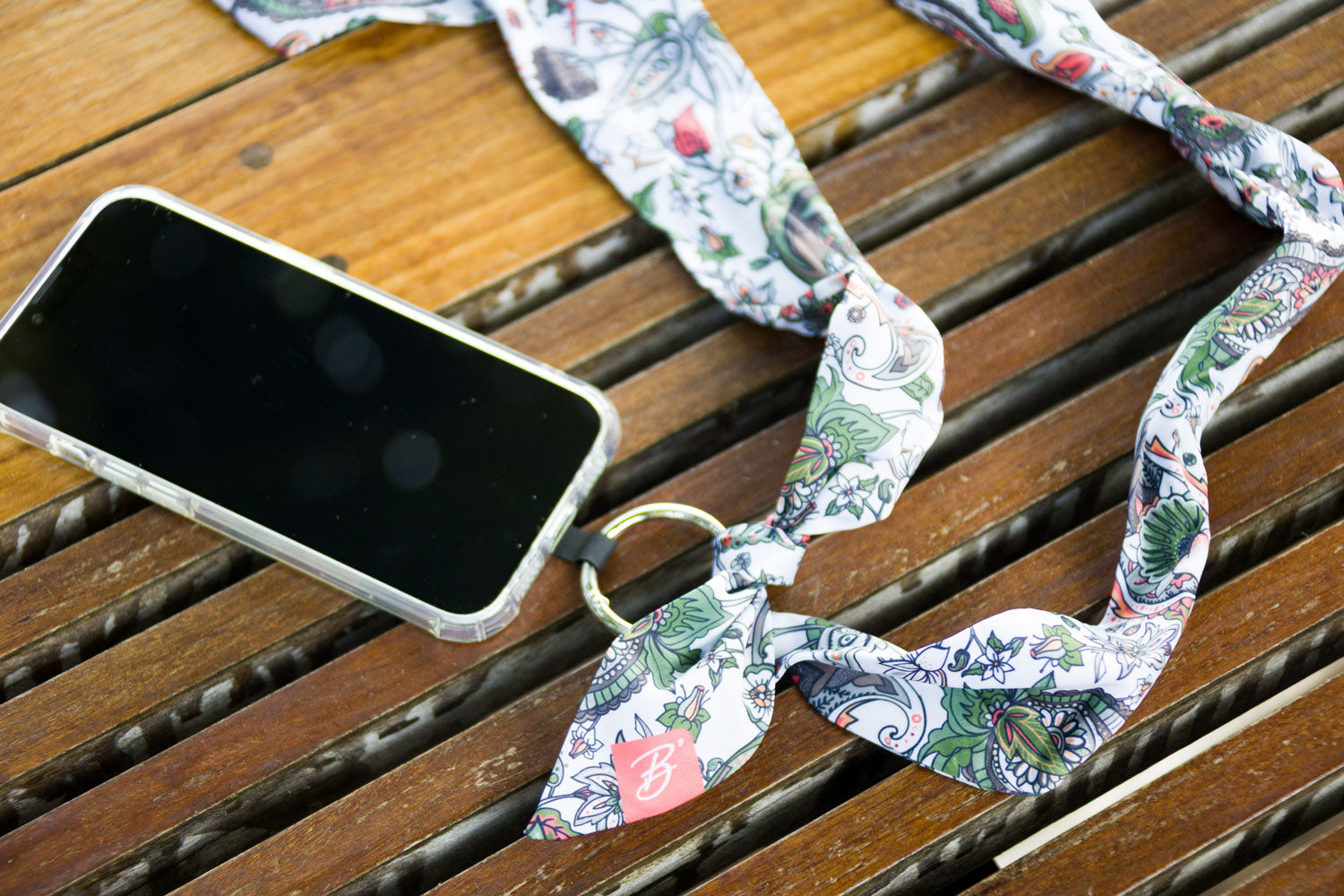 En collier ou en bandoulière, il s’adaptera à toutes les morphologies grâce à ses 160 cm de ruban. Support de fixation autocollant universel compatible avec tous les téléphones, fixé à un anneau à ressort (type mousqueton). La sangle de téléphone s’attache à l’aide d’un double noeud à la longueur désirée.