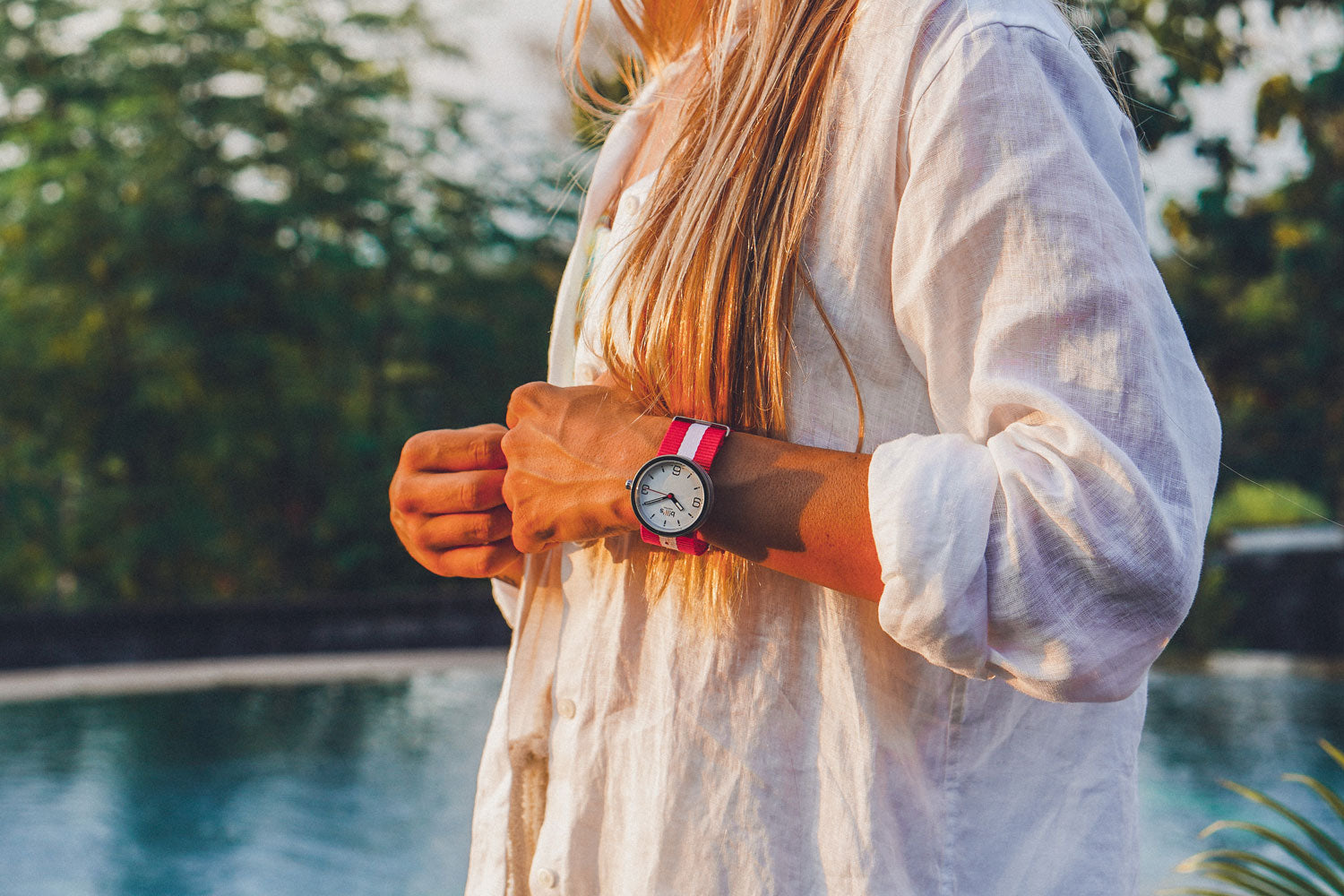 Interchangeable and available in an infinite number of combinations. A real 3-in-1 watch, it mounts in a flash on Leather, Nylon NATO and even Silicone Slap straps.
